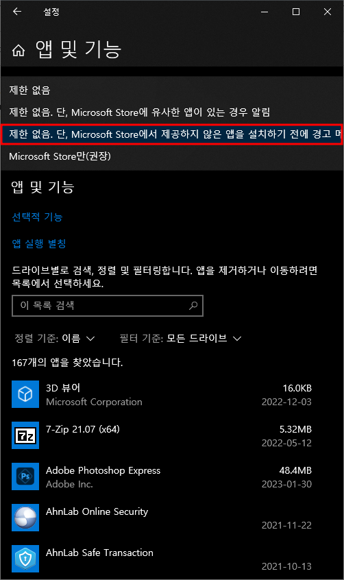 - 앱 설치 설정 변경하기(Microsoft 만 → 제한없음)