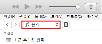 새로 설치한 iTunes에는 음악, 동영상, TV 프로그램 메뉴는 있는데, 앱 메뉴가 없어서 해당 메뉴를 추가해보도록 하겠습니다. 일단 중간의 메뉴바에서 '음악'을 클릭한 후 나오는 드롭다운 메뉴에서 '메뉴 편집'을 클릭합니다. 추가할 수 있는 메뉴들이 여러개가 있는데, 이중에 중간에 보시면 '앱' 이라는 메뉴가 있습니다. '앱'을 클릭해서 추가한 후 완료 버튼을 누르도록 하겠습니다.