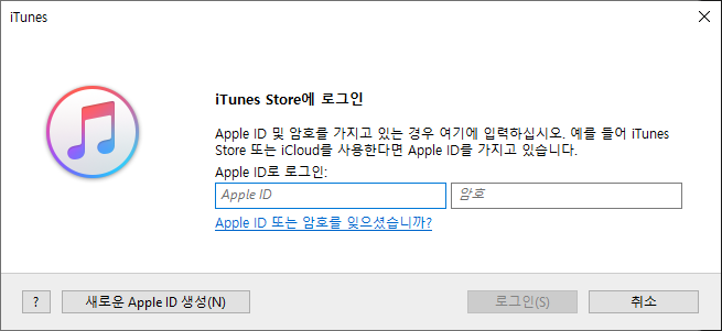 iTunes를 실행하고 애플계정으로 로그인을 합니다. 로그인 창이 뜨지 않는 경우 상단 메뉴 중에서 '계정' 메뉴로 들어가면 로그인 메뉴가 있습니다. 클릭해서 Apple 아이디와 비밀번호를 입력해 로그인 해줍니다.